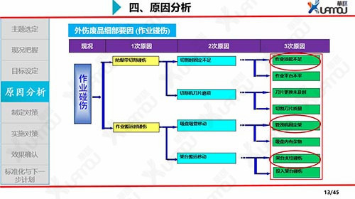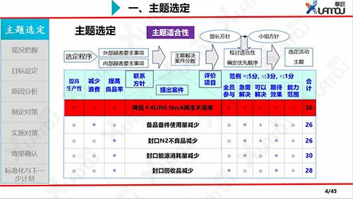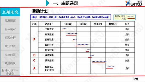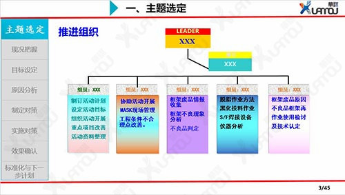 - 1: QCC組成部門級別、班組級別的品質圈,選定主題,協調各方資源對問題進行小組改善。
